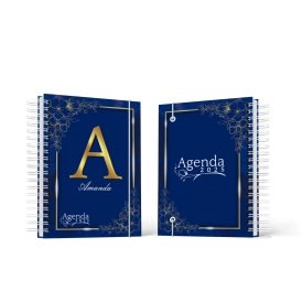 Agenda Floral Azul Escuro - Mod.03 | Capa Dura Wire-o | 15x21cm | 350 páginas | 1 dia por página