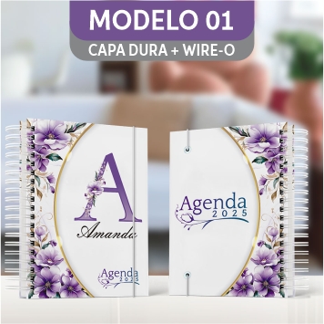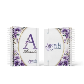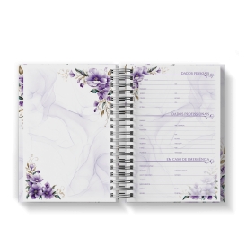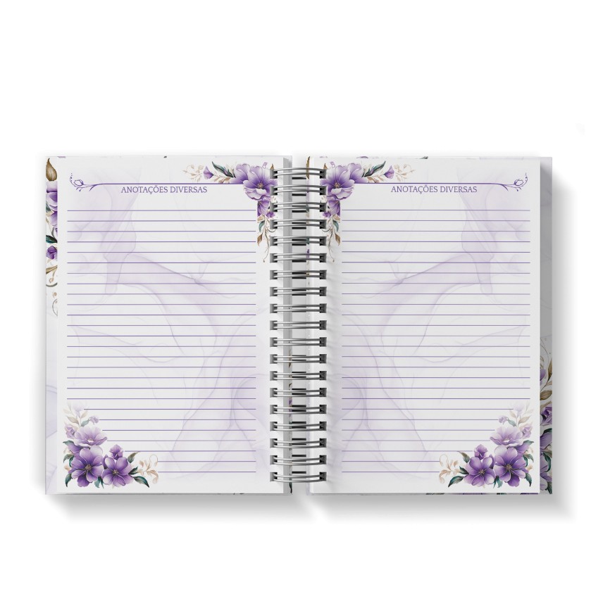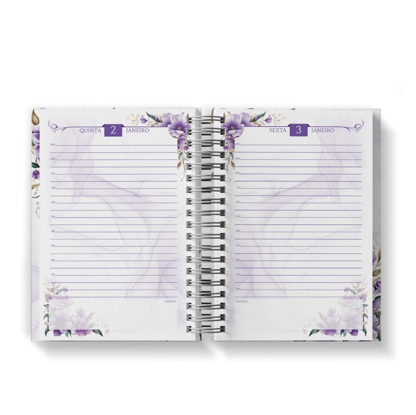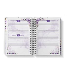 Agenda Floral Lilás - Mod.01 | Capa Dura Wire-o | 15x21cm | 350 páginas | 1 dia por página