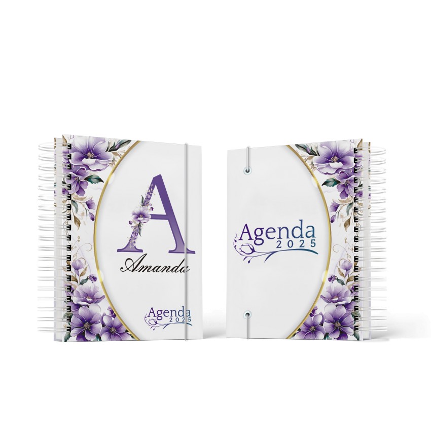 Agenda 2025 Floral com capa personalizada com Letra e Nome.