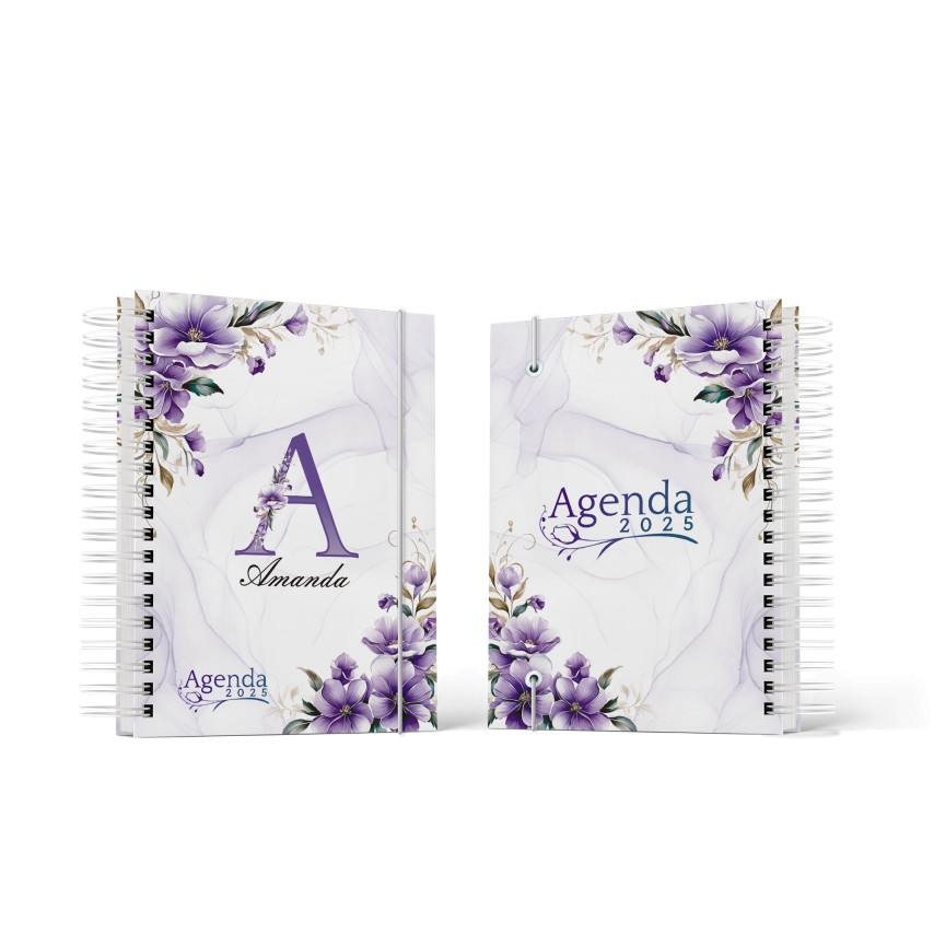 Agenda 2025 Floral com capa personalizada com Letra e Nome.