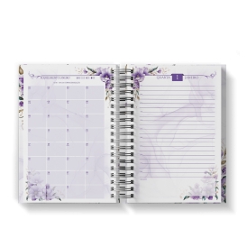 Agenda Floral Lilás - Mod.04 | Capa Dura Wire-o | 15x21cm | 350 páginas | 1 dia por página