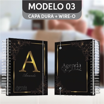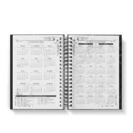 Agenda Floral Preto - Mod.03 | Capa Dura Wire-o | 15x21cm | 350 páginas | 1 dia por página