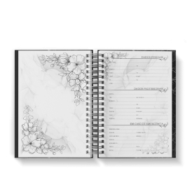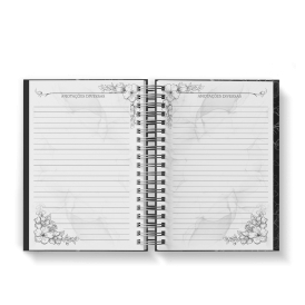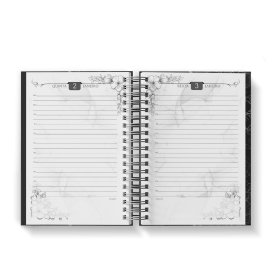 Agenda Floral Preto - Mod.04 | Capa Dura Wire-o | 15x21cm | 350 páginas | 1 dia por página