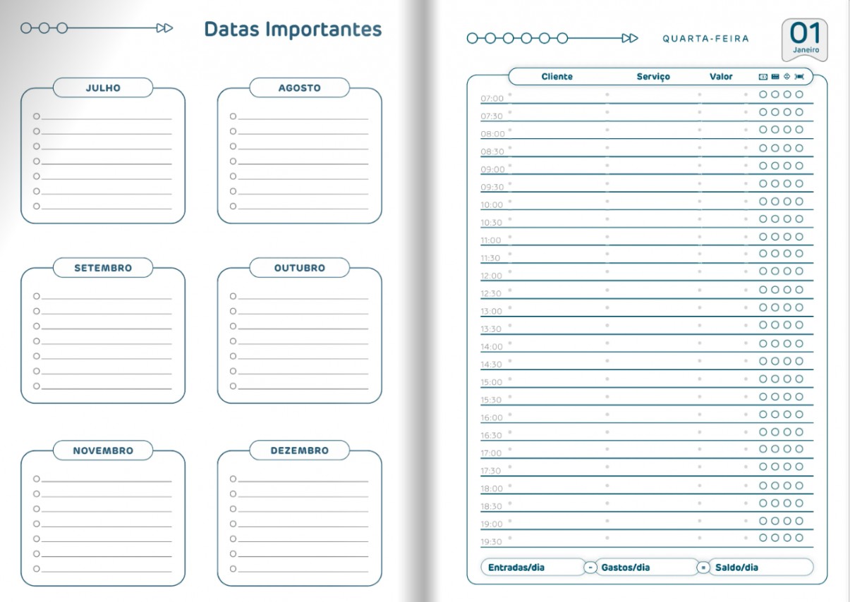 Agendas Capa Dura são produzidas com as páginas no tamanho e 15,45x21,6 cm. Essa medida é muito popular, já que pode ser utilizada por secretárias, empresários e estudantes.