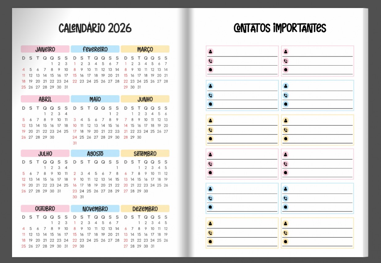 Agenda Personalizada | Modelo Smile | 15x21cm | 200 páginas | 2 Dias por página
