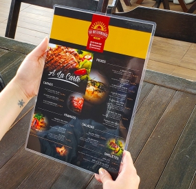 Assim como os cardápios em PVC, também é uma opção de cardápios plastificados que também oferecem qualidade em impressão digital e durabilidade no material. Os cardápios plastificados são produtos que recebem uma laminação polaseal onde é possível laminar até duas folhas em ofício comum frente e verso. Para este material, aqui na Super Cópias não existe limite de tiragens e podem ser confeccionados em tamanhos A5, A4 e A3.