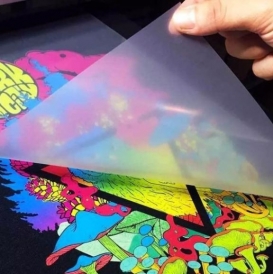 O DTF têxtil é uma impressão direta no filme, com aplicação de tinta branca para dar base em tecidos escuros. A impressão é misturada com a poliamida, que é um termocolante, e levada a um forno para cura. Depois disso o adesivo está pronto para prensar. E o melhor de tudo é que você pode estampar algodão e cores escuras.