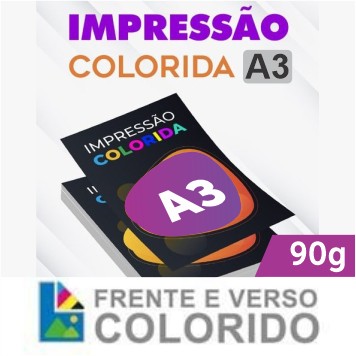 Impressão Colorida Papel Sulfite 90g | A3 | 4/4 - Frente e Verso | Jato de Tinta