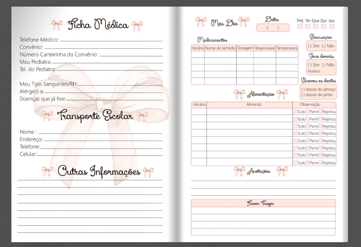 Agenda Personalizada | Creche Menina | 15x21cm | 380 páginas | Não datadoPapel / Material: Capa: Cartão 300g | Miolo: Offset 75gCores: Capa Personalizada 4/0, Miolo 1/1 ou 4/4Tamanho final: 15x21cmPrazo de produção: 3 dias úteis + prazo de entrega