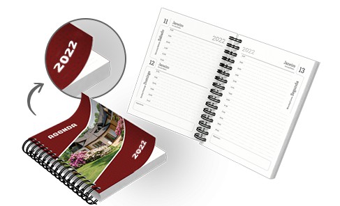 Agenda Capa Maleável é um material gráfico de alta durabilidade, produzido com as folhas em papel sulfite, com capa e contracapa personalizáveis com a arte gráfica enviada durante o processo de compra. O miolo da agenda conta com folhas padronizadas indicando e separando os dias e meses do ano, por isso recebe o nome de Agenda Capa Maleável Diária.