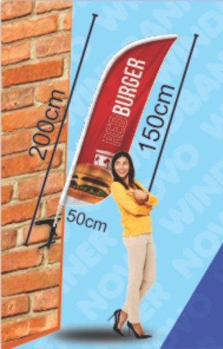 TAMANHO DO WIND BANNER MONTADO APROXIMADAMENTE: 180cm de Altura